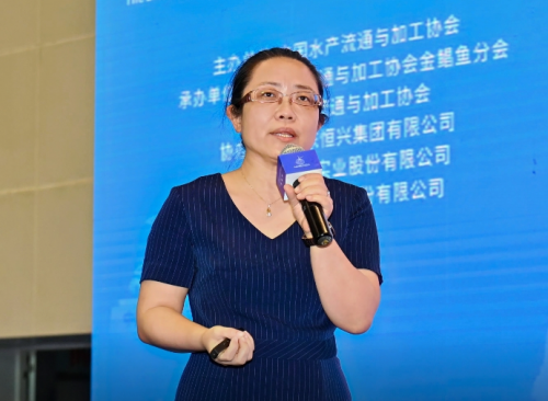 广东恒兴集团有限公司水产食品事业部总监曾令彬作《金鲳鱼食品的国内与国际市场潜力》的报告