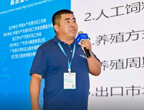 广东恒兴饲料实业股份有限公司常务副总裁张海涛作《金鲳鱼产业的痛点分析与恒兴行动方案探讨》的报告