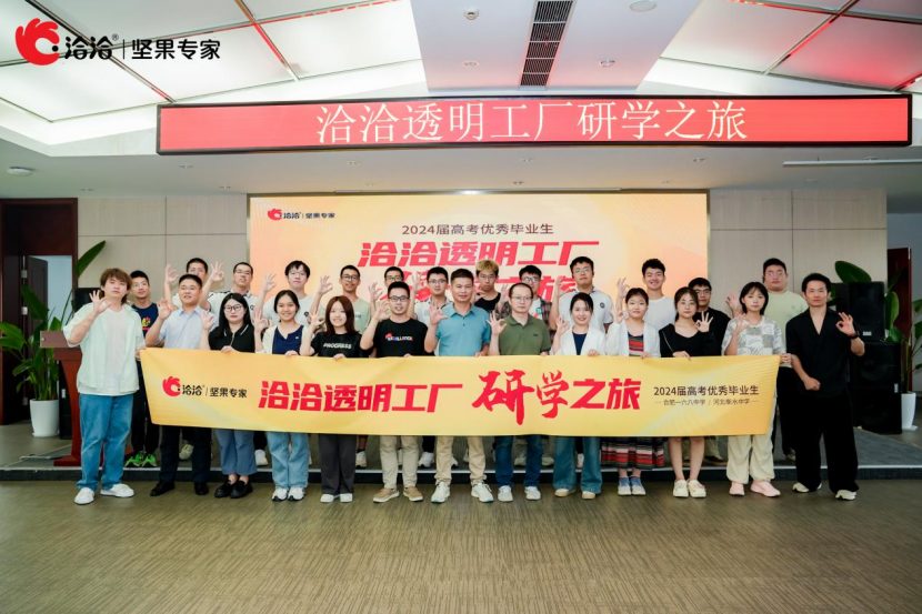 时光荏苒,诺言成真。8月15日,合肥168中学和河北衡水中学20位高考优秀毕业生和老师一同踏上了洽洽研学之旅,参观了洽洽透明工厂,体验了洽洽坚果学院的坚果科普课堂,在长丰碧根果种植基地参与了社会实践,深入了解一颗坚果从种子到产品的全过程。