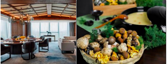 昆明喜来登酒店悦韵中餐厅推出时令山珍菌子火锅套餐,精选松茸、羊肚菌、土鸡熬制浓汤,搭配谷熟茵、虫草花等菌子拼盘,尽释山野鲜香。12间典雅包厢,宾客们可于静谧私享的空间中,慢赏滇味之韵。