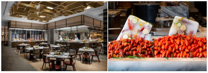 广州粤海喜来登酒店盛宴全日自助餐厅推出双人鱼子酱生蚝主题自助晚餐,小龙虾、广式点心、香烤牛羊排等中西佳肴一应俱全,尽享舒适惬意的用餐时光。