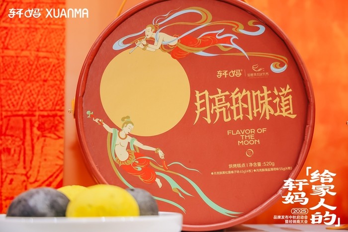 “月亮的味道”与敦煌美术研究所联名,把敦煌的飞天揽月壁画搬到了礼盒上。轩妈在酥点口味上也进行了创新。满足人们团聚赏味需求的同时,也满足人们对月亮味道的想象。让传统节令食品跳出仪式负担,变成可以玩、值得晒、嚼得到的生活惊喜。