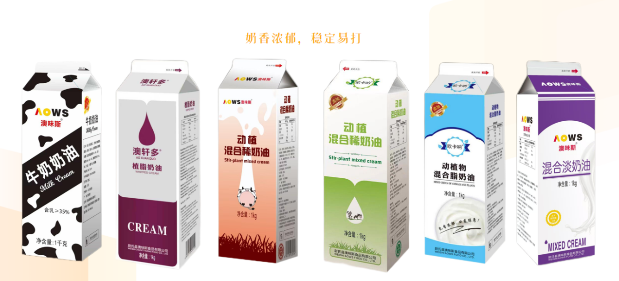 牛奶奶油系列:乳脂醇厚,奶香浓郁,适合生日蛋糕、庆典甜品等华丽造型;