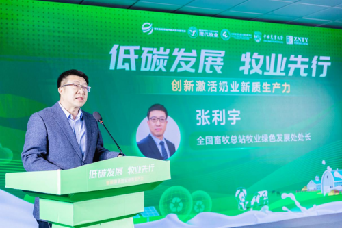 全国畜牧总站牧业绿色发展处处长张利宇发表致辞,他指出,积极稳妥推进奶业生产向低碳发展转型已成为行业共识,希望本次研讨会带来更多奶业绿色低碳、节粮减排的新技术、新模式、新经验,为产业一线工作者带来更多新启发、新思路,推动产业的绿色发展取得更大成就。